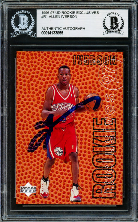 76ers Allen Iverson Signed 1996 Upper Deck #91 Rookie Card Auto 10! BAS Slabbed