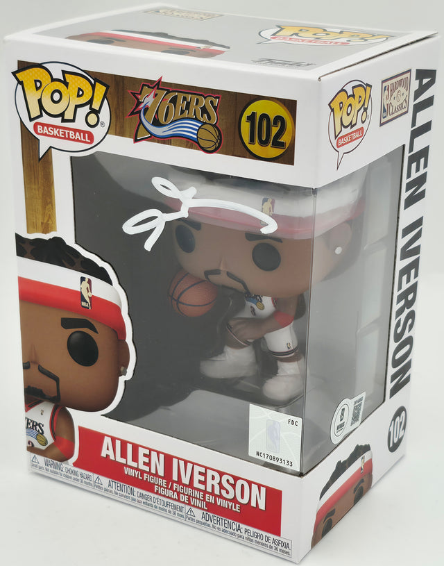 This collectible Funko Pop Vinyl Figurine #102 has been hand-signed by NBA legend Allen Iverson, making it a must-have for fans of basketball and pop culture memorabilia. Known for his fearless style of play and lasting impact on the game, Allen Iverson is a Hall of Famer who defined an era with the Philadelphia 76ers. This signed figurine offers a unique opportunity to own a piece of basketball history in a fun and display-worthy form. The autograph has been witnessed and certified authentic by Beckett Authentication Services (BAS), ensuring complete confidence in the item's authenticity. Whether you're expanding your sports memorabilia collection or surprising a true fan, this signed Allen Iverson Funko Pop is a standout piece.