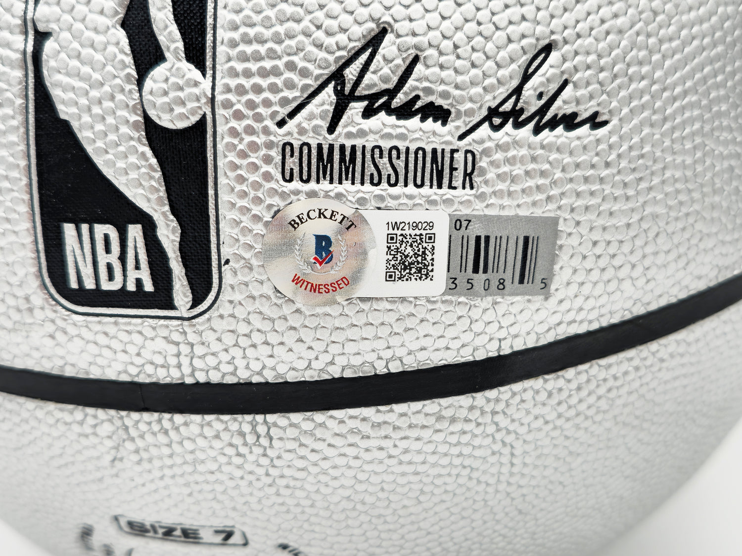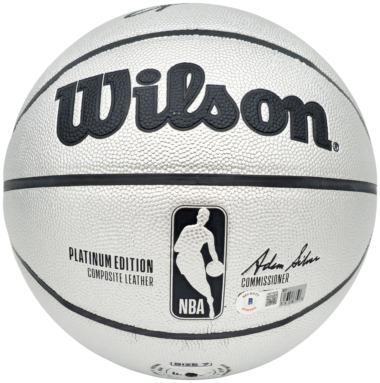 This Platinum Edition Composite Leather Basketball has been hand-signed by Allen Iverson, one of the most electrifying and influential players in NBA history. A true icon of the game, Iverson's signature on this premium basketball makes it a must-have for collectors and basketball enthusiasts alike. This exclusive collectible is witnessed and certified authentic by Beckett Authentication Services (BAS), ensuring 100% authenticity with their tamper-proof witness sticker. Key Features: