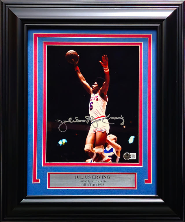 Julius "Dr. J" Erving Autographed Framed 8x10 Photo Philadelphia 76ers Beckett BAS QR #BM37813