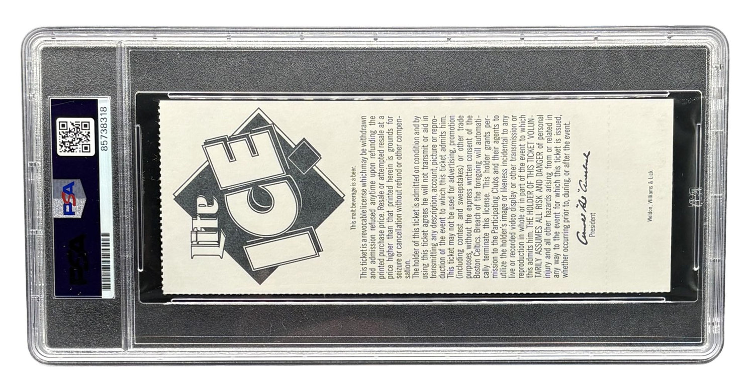 Verified authentic and professionally slabbed, this hand-signed full ticket offers crossover desirability for ticket and autograph collectors alike—an ideal, display-ready addition for Celtics loyalists and NBA rivalry historians seeking a premium Larry Bird piece with lasting value.