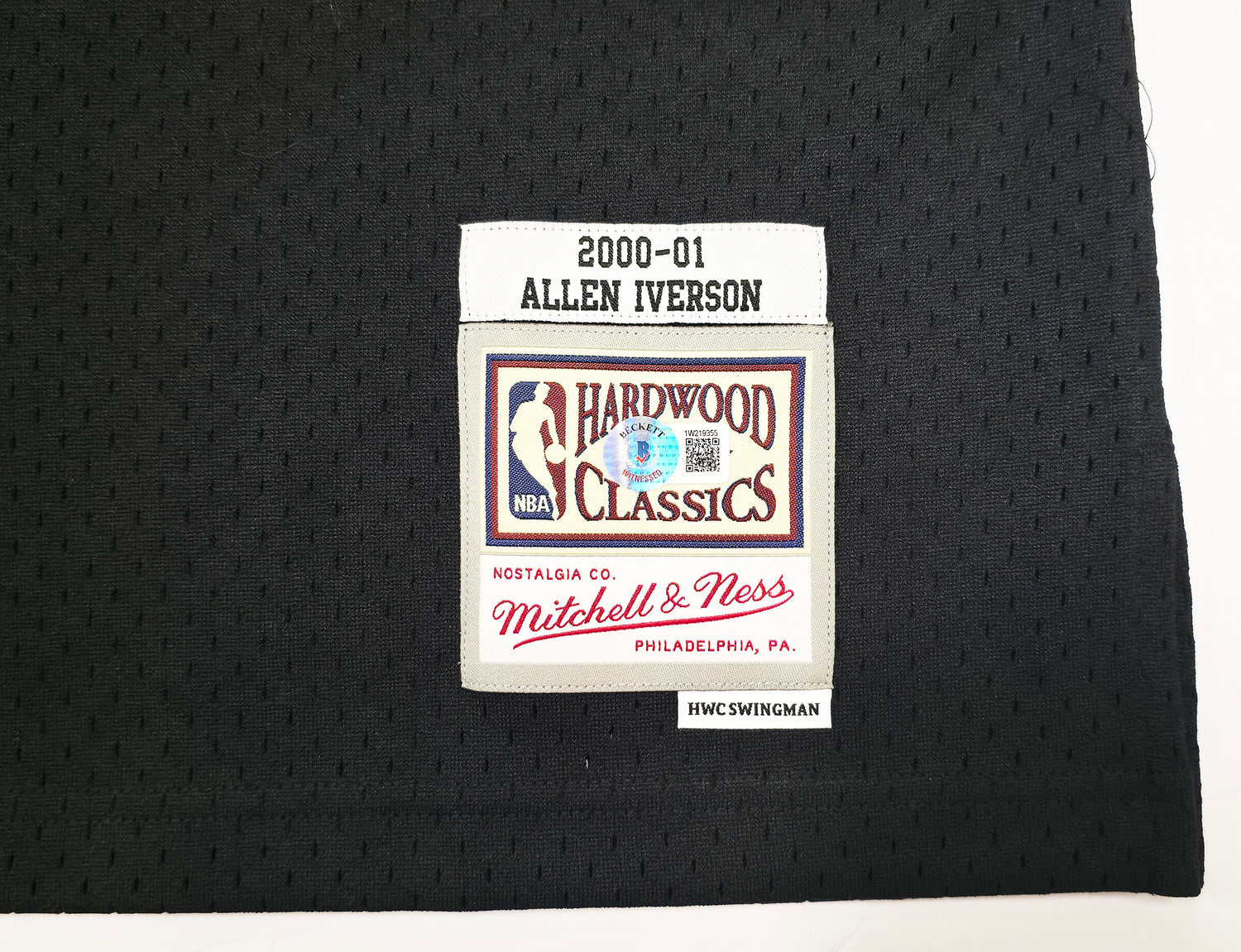 Own a piece of NBA history with this Black Authentic Mitchell & Ness Philadelphia 76ers 2000-01 HWC Swingman Jersey, personally hand signed by Allen Iverson—one of the most electrifying players in basketball history. A tribute to the iconic 2000-01 NBA season, this Size XL jersey represents the era when Iverson led the Philadelphia 76ers to the NBA Finals and earned league MVP honors. This collectible is perfect for fans of "The Answer" and serious memorabilia collectors alike. Authenticated by Beckett Authentication Services (BAS), it comes with a tamper-proof witness hologram to ensure its legitimacy and long-term value.