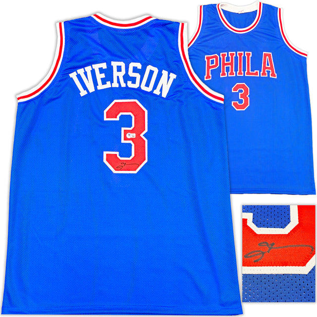 Philadelphia 76ers Allen Iverson Autographed Blue Jersey Beckett BAS Witness Stock #233364 is backordered and will ship as soon as it is back in stock.