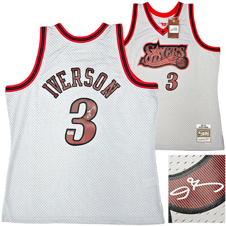 76ers Allen Iverson Authentic Signed Grey M&N HWC Swingman Jersey BAS Witnessed
