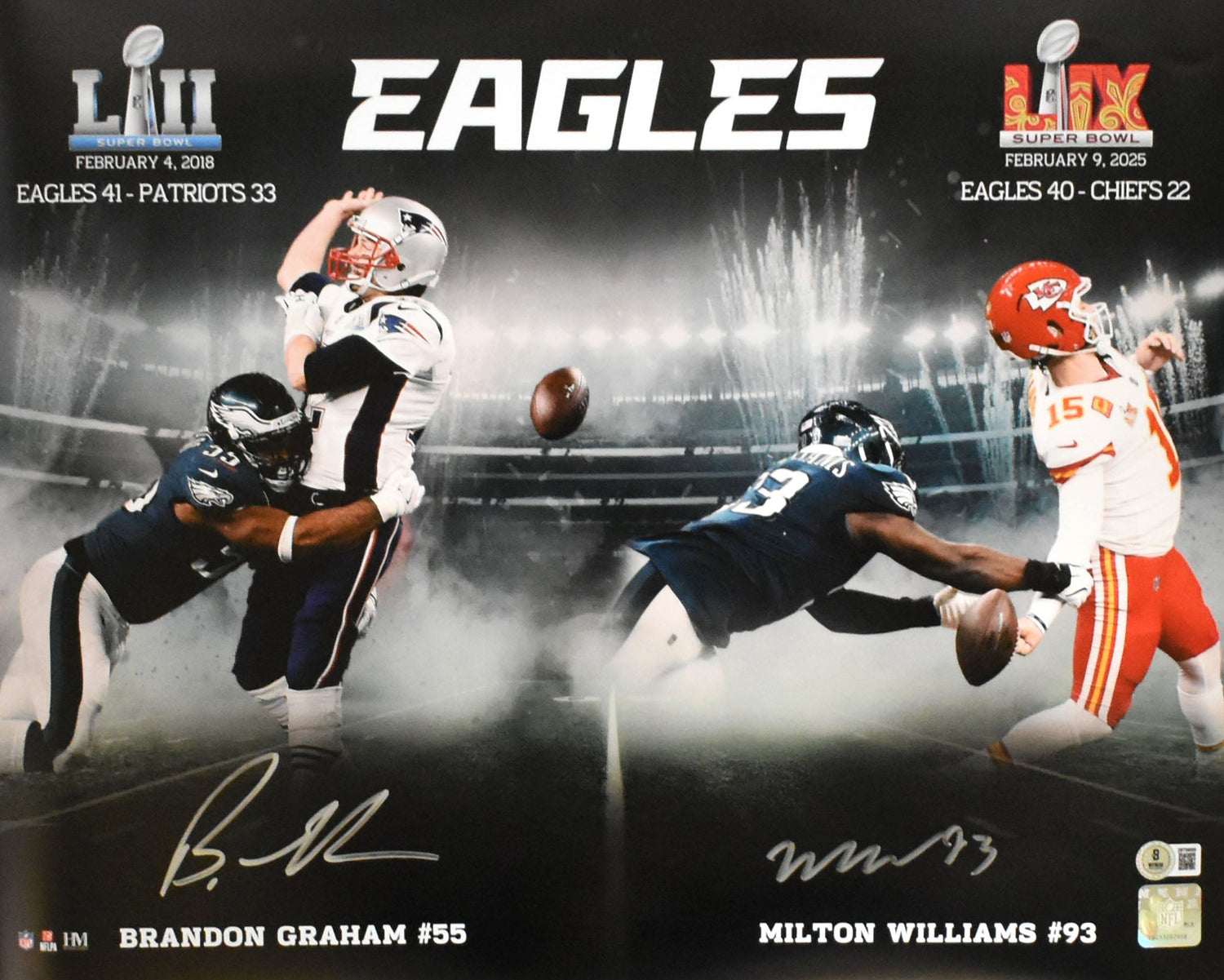 - Official hand-signed 16x20 horizontal photo featuring Brandon Graham and Milton Williams