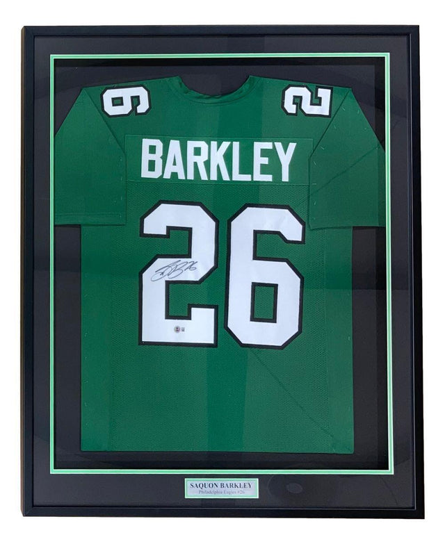 Saquon Barkley Philadelphia Signed Framed Kelly Green Football Jersey BAS ITP