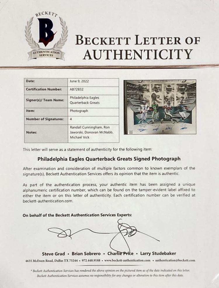 - Hand-signed by Michael Vick, Donovan McNabb, Ron Jaworski, and Randall Cunningham.