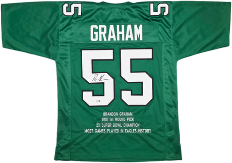 Philadelphia Eagles Brandon Graham Autographed Green Stat Jersey Beckett BAS Witness Stock #241648