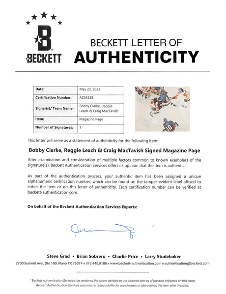 Flyers (3) Clarke, Leach & MacTavish Signed 8.5x11 Magazine Page BAS #AC33628