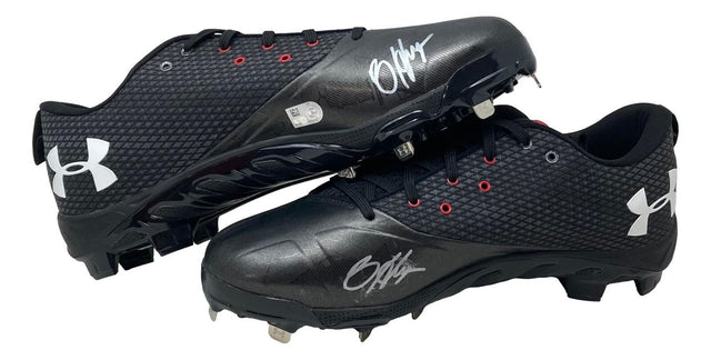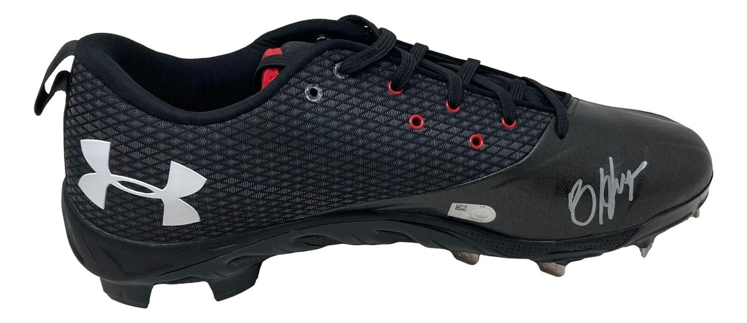 Own a rare piece of Philadelphia Phillies history with this Bryce Harper signed pair of team-issued Under Armour baseball cleats. These cleats were hand-signed by Bryce Harper, one of baseball’s most electrifying superstars, making them a must-have for dedicated Phillies fans and collectors alike.