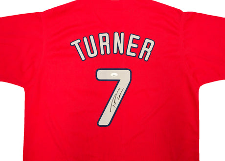 Philadelphia Phillies Trea Turner Autographed Red Jersey JSA Stock #234073