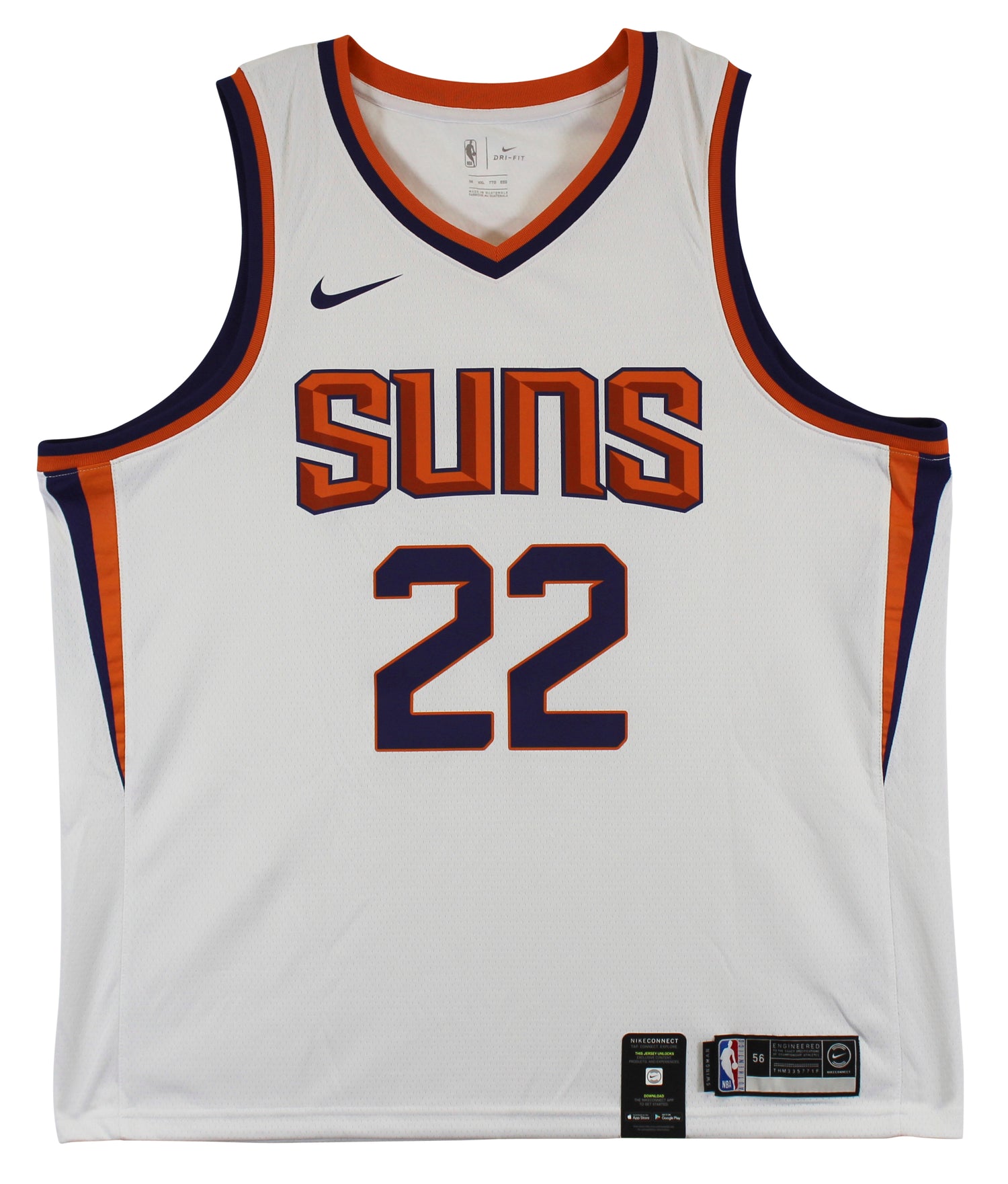 Own a piece of Phoenix Suns history with this DeAndre Ayton White Nike Swingman Jersey (Size 56). Perfect for any Suns fan or basketball enthusiast, this officially licensed jersey captures the authentic look and feel of what the pros wear on the court. While this jersey is not autographed, it remains a must-have for collectors and supporters of the Suns’ dominant big man, DeAndre Ayton.