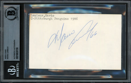 Mario Lemieux Autographed 1990-91 Score Card #337 Pittsburgh Penguins Beckett BAS #18280502