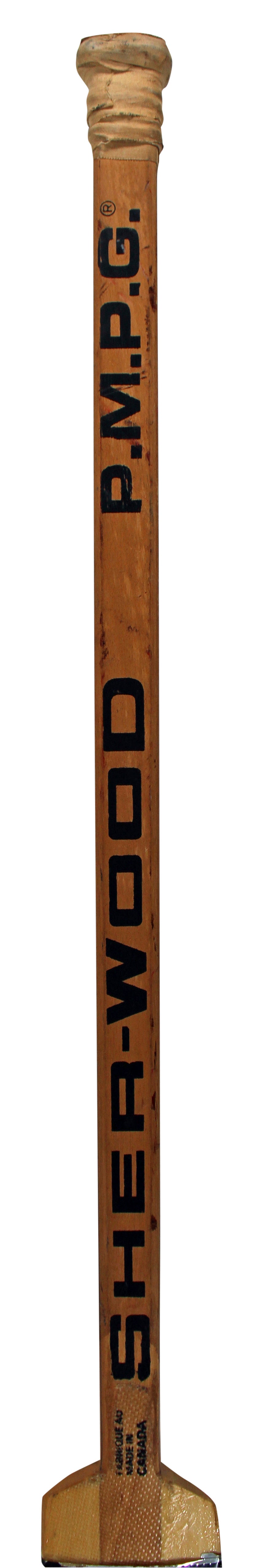 Own a rare piece of hockey history with this Autographed Game-Used Sher-Wood P.M.P.G. Goalie Hockey Stick, personally signed by Wendell Young of the Pittsburgh Penguins. A treasured collectible for serious hockey fans and memorabilia collectors, this stick exhibits wear consistent with game use, though no official paperwork is included to confirm its game-used status.