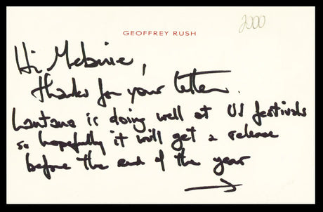 Geoffrey Rush Pirates Of The Caribbean Authentic Signed 4x6.25 Note BAS #BS29395