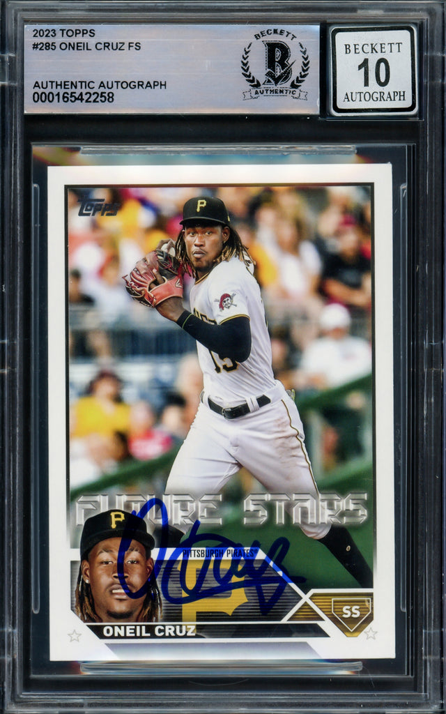 Oneil Cruz Autographed 2023 Topps Card #285 Pittsburgh Pirates Auto Grade Gem Mint 10 Beckett BAS #16542258