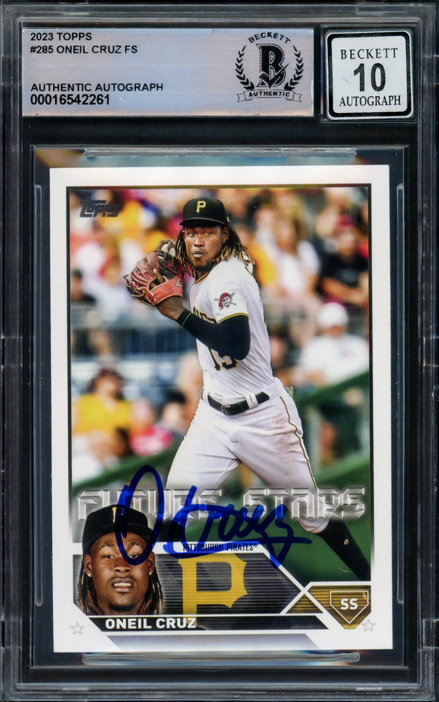 Oneil Cruz Autographed 2023 Topps Card #285 Pittsburgh Pirates Auto Grade Gem Mint 10 Beckett BAS #16542261
