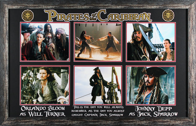 Johnny Depp & Orlando Bloom Pirates Of The Caribbean Signed Framed Display BAS