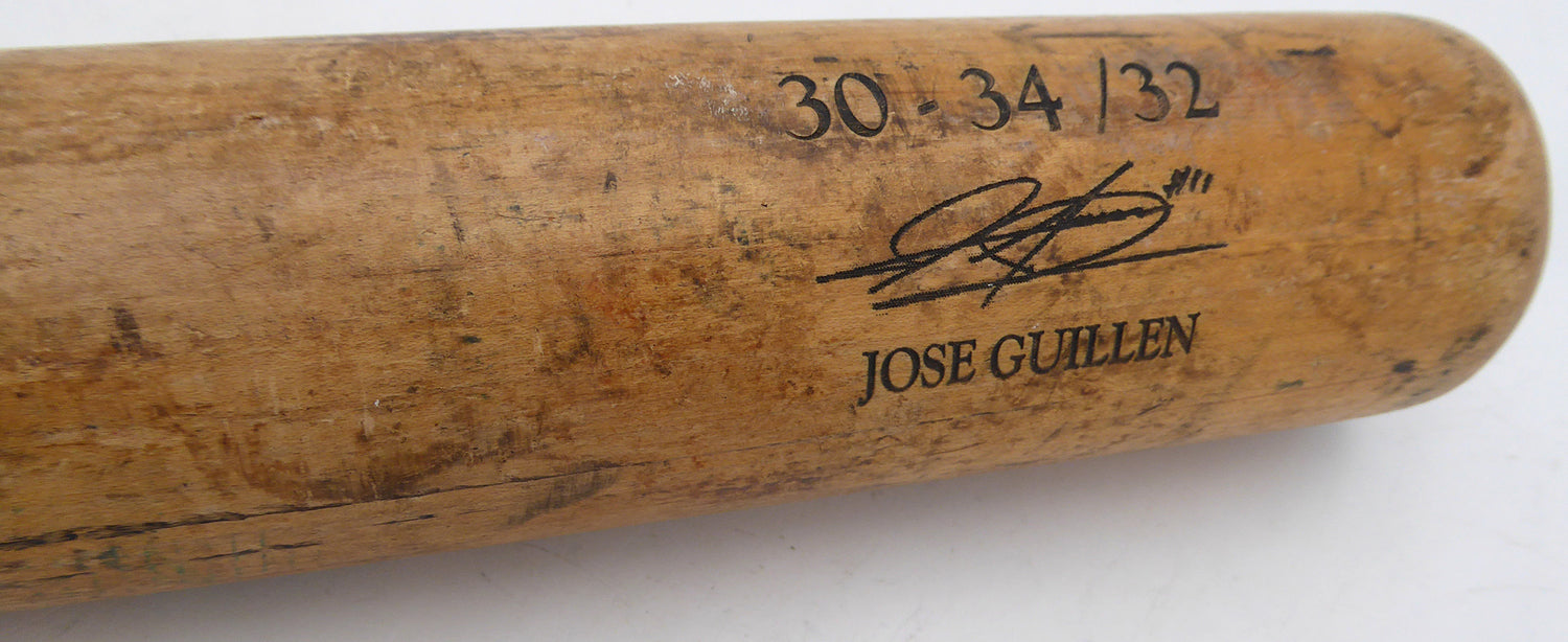 Own a piece of Major League Baseball history with this impressive Jose Guillen game-used bat. While it is unsigned, this authentic bat was used by Jose Guillen during his MLB career and is a rare collectible perfect for dedicated fans and collectors. Guillen, known for his powerful swing and strong arm, played for several teams, including the Pittsburgh Pirates and Anaheim Angels, making this bat a tangible connection to his time in the majors. This item offers true game-day authenticity and is a must-have for sports memorabilia enthusiasts looking to celebrate the career of one of baseball's most dynamic outfielders.