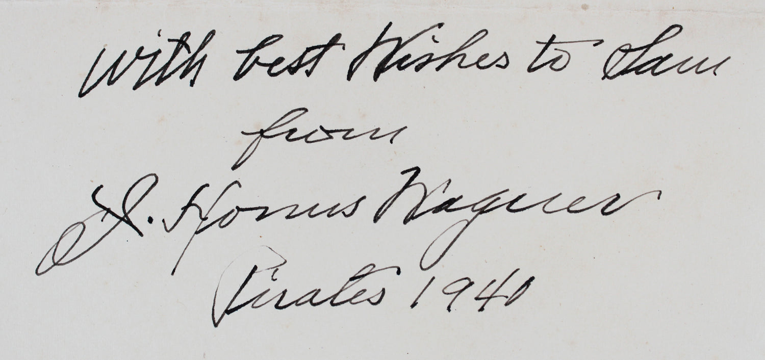 Own a rare piece of baseball history with this Autographed 6x9.5 Handwritten Letter personally signed by the legendary Honus Wagner of the Pittsburgh Pirates. A true icon of America’s pastime, Wagner’s legacy as one of the greatest shortstops of all time makes this a prized collectible for serious fans and memorabilia enthusiasts. This letter includes a special inscription: "With Best Wishes To Sam From, Pirates 1940," offering a personal glimpse into the life of this Hall of Fame legend.