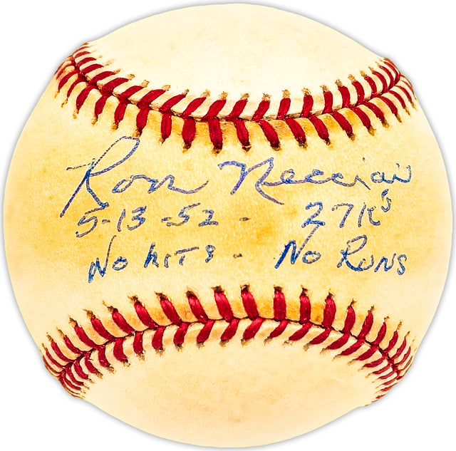 This Official National League Baseball has been hand-signed by Ron Necciai and inscribed with "5-13-52 27 K's No Hits No Runs," commemorating his legendary 27-strikeout no-hitter on May 13, 1952. Necciai’s performance remains one of the most remarkable feats in baseball history, making this signed ball a must-have for serious collectors.