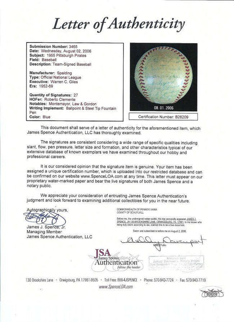 Robert Clemente Rookie Signed 1955 Pirates NL Baseball + 27 Others JSA LOA