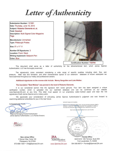 Pirates Roberto Clemente "Best Wishes" Signed & Framed 8x11 Magazine Page JSA