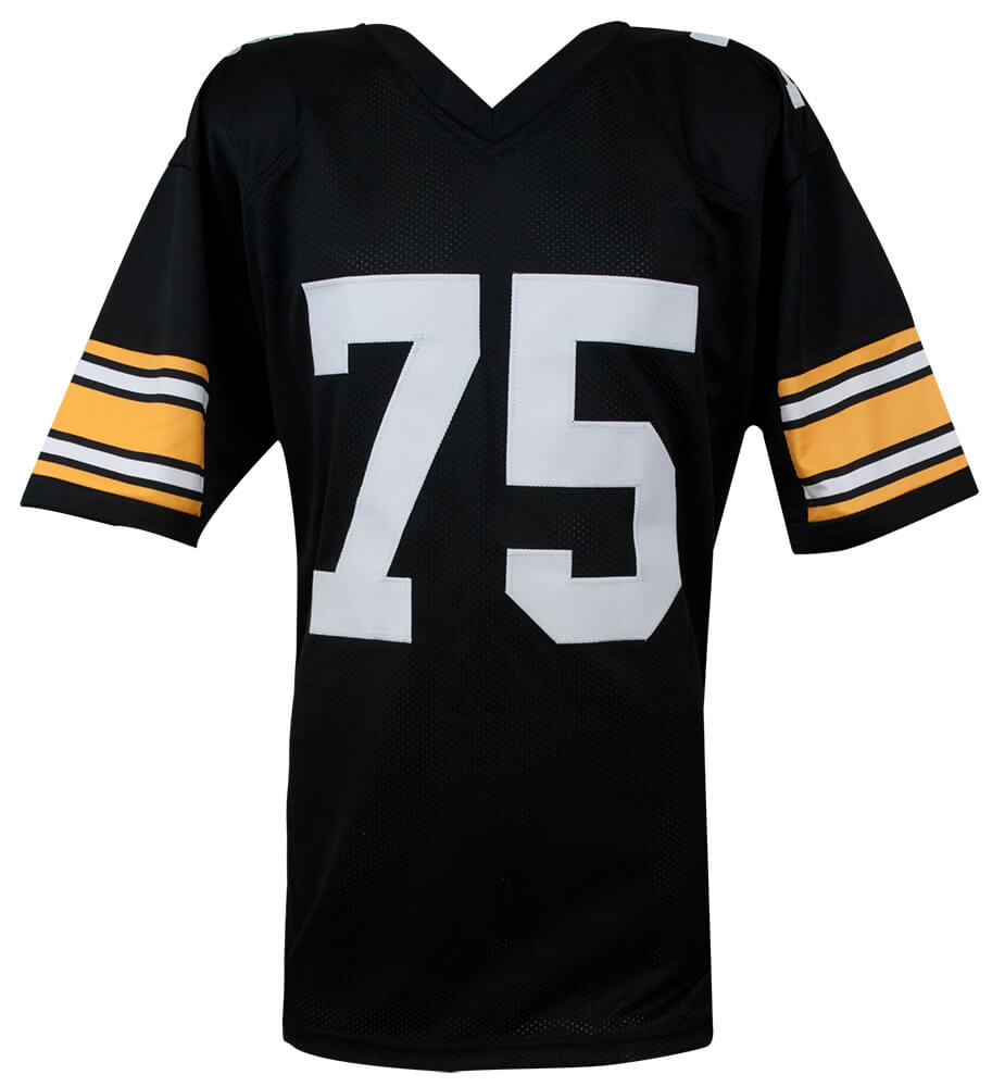 Own a piece of football history with this Joe Greene signed black custom football jersey, complete with a "HOF 87" inscription —a tribute to his legendary career. A cornerstone of the Pittsburgh Steelers' iconic "Steel Curtain" defense, Greene was a dominant force in the NFL and played a crucial role in the team's four Super Bowl victories during the 1970s.