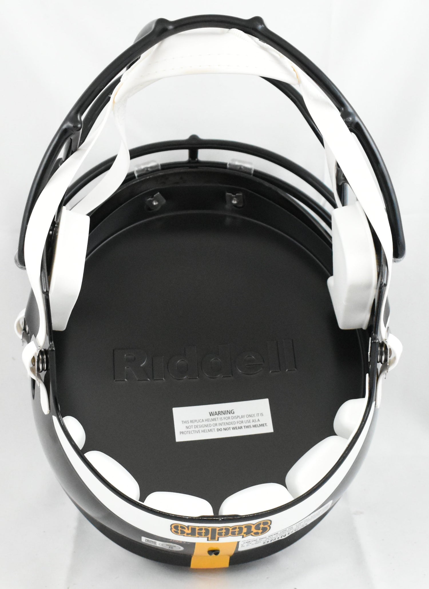 Celebrate your passion for football with this authentic, signed collectible: a Kaleb Johnson autographed Riddell full-size Speed Replica football helmet, proudly representing the Pittsburgh Steelers. This striking piece of memorabilia is perfect for die-hard Steelers fans and collectors seeking a standout addition to their sports room or fan cave. Featuring the sleek Speed Replica design by Riddell, this helmet captures the authentic look of the gridiron — complete with Kaleb Johnson’s signature as proof of player connection. Verified through the trusted Beckett Witnessed Authentication system, this autographed helmet includes a numbered hologram and a scannable QR code for instant online verification. You can view the signing details directly on the Beckett Authentication website, affirming the signature’s legitimacy and adding a layer of authenticity appreciated by serious collectors. Whether secured during a public signing or a private session, this signed Steelers helmet captures a unique moment in the evolving history of Pittsburgh football. It's an ideal gift for Pittsburgh Steelers fans or a premium display piece for memorabilia enthusiasts.