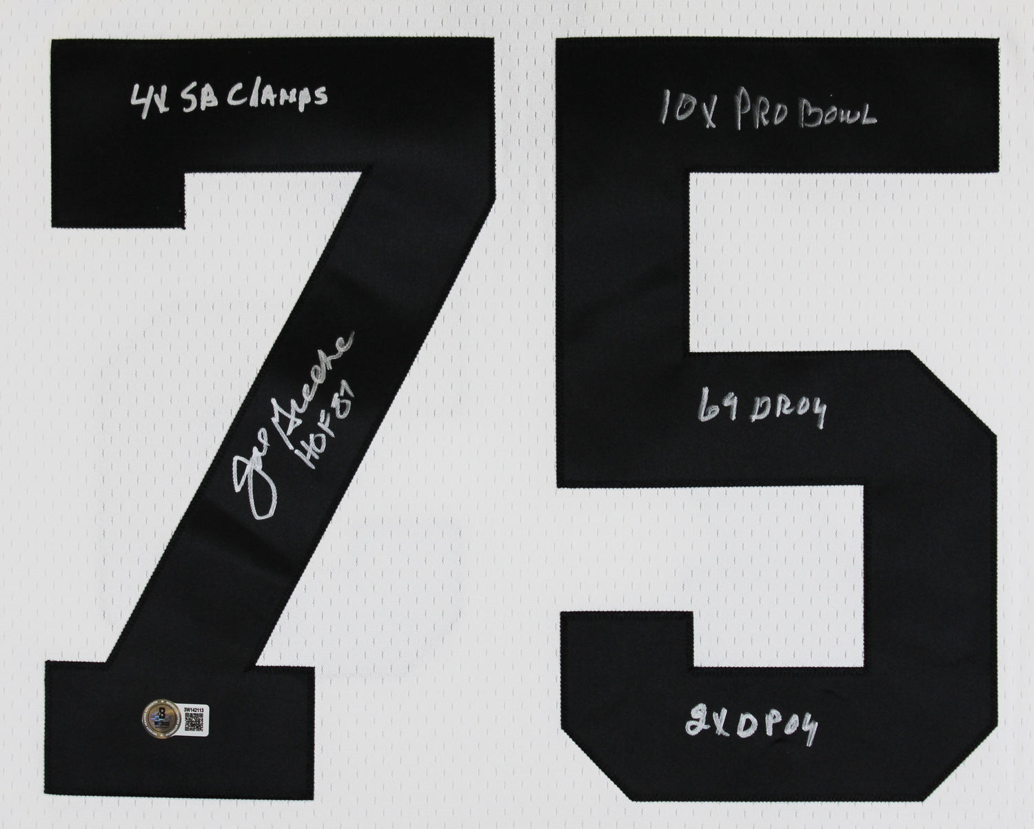 Steelers Joe Greene "Career Stat" Signed White M&N TB Jersey BAS Witnessed