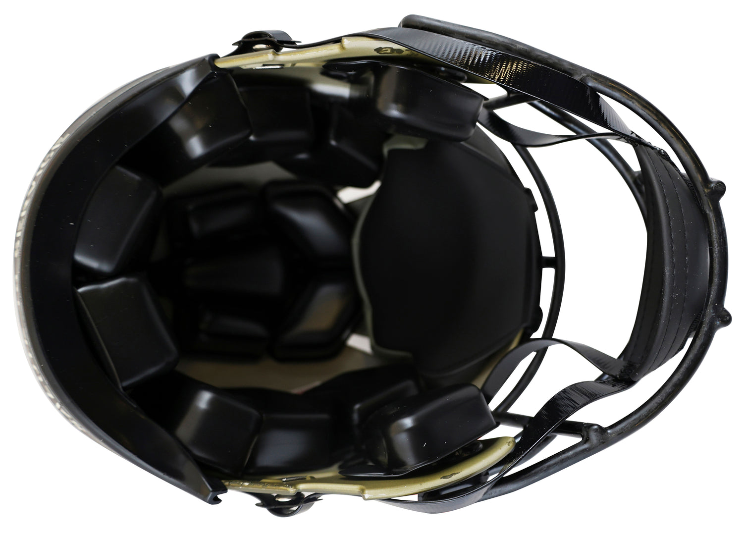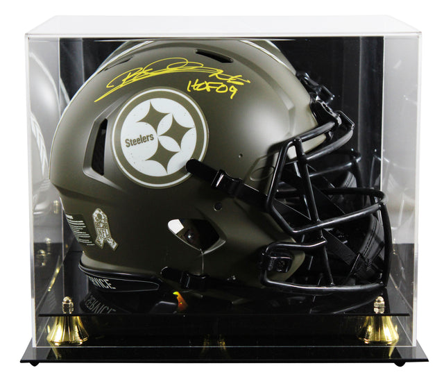 Celebrate football greatness with this Rod Woodson Autographed Alternate Salute to Service Full Size Speed Proline Helmet, featuring the rare inscription "HOF 2009"—a tribute to his 2009 Pro Football Hall of Fame induction. A true legend of the game, Rod Woodson made indelible marks during his career with the Pittsburgh Steelers, earning 11 Pro Bowl selections and solidifying his legacy as one of the greatest defensive backs in NFL history. This collector's piece is not only visually striking—it’s a meaningful homage to Woodson’s dedication and impact on the game. Encased in a premium UV Mirrored Back Acrylic Display Case, this helmet shines in any memorabilia collection and offers long-lasting protection. Each helmet is authenticated by Beckett Authentication Services (BAS) through their Witnessed Protection Program, with a tamper-proof sticker and scannable QR code for instant verification.
