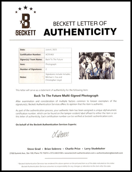 $319Unit price /UnavailableBack to the Future Autographed 16x20 (5) Cast Photo Michael J. Fox - Beckett W