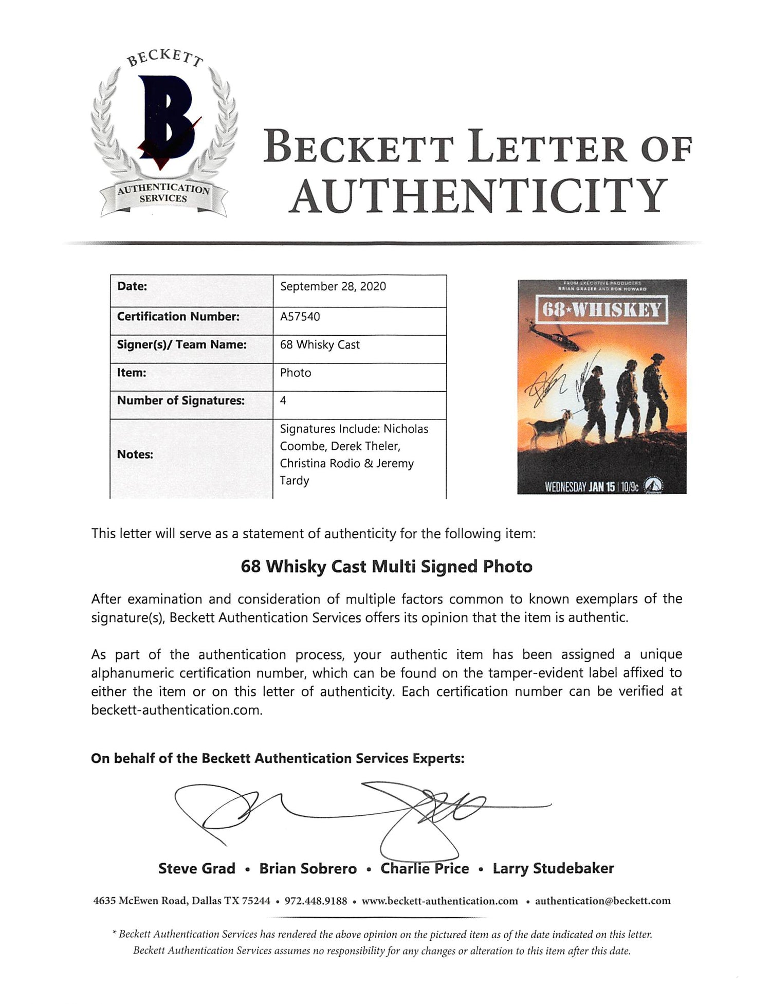 68 Whiskey (4) Coombe, Theler, Rodio & Tardy Signed 11x14 Photo BAS #A57540 is backordered and will ship as soon as it is back in stock.