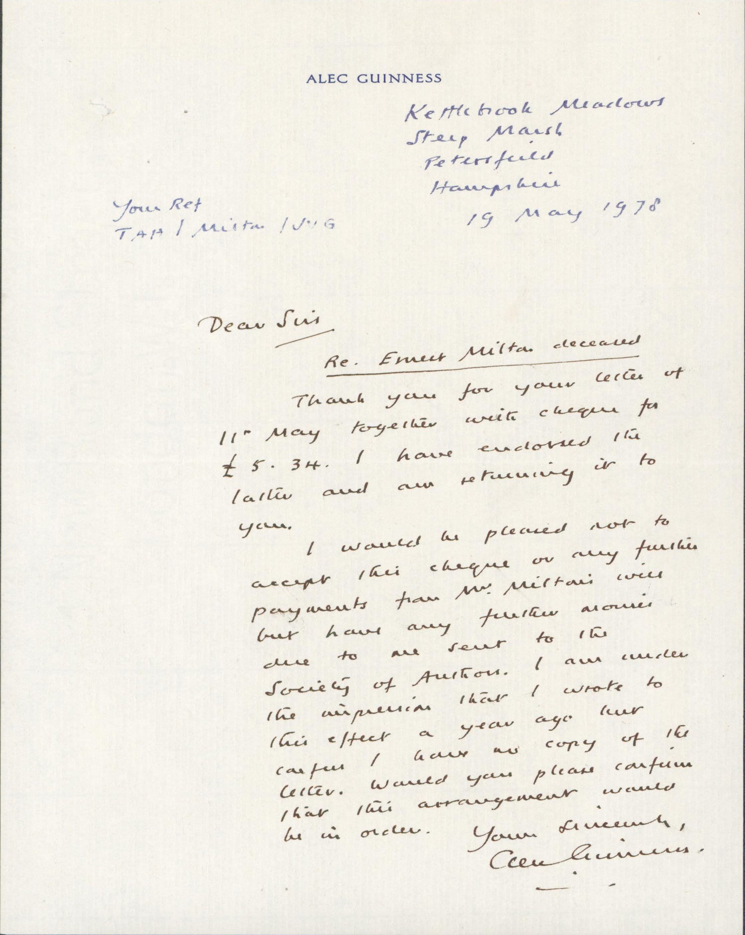Alec Guinness Star Wars Authentic Signed 1978 Handwritten Letter BAS #AA06581