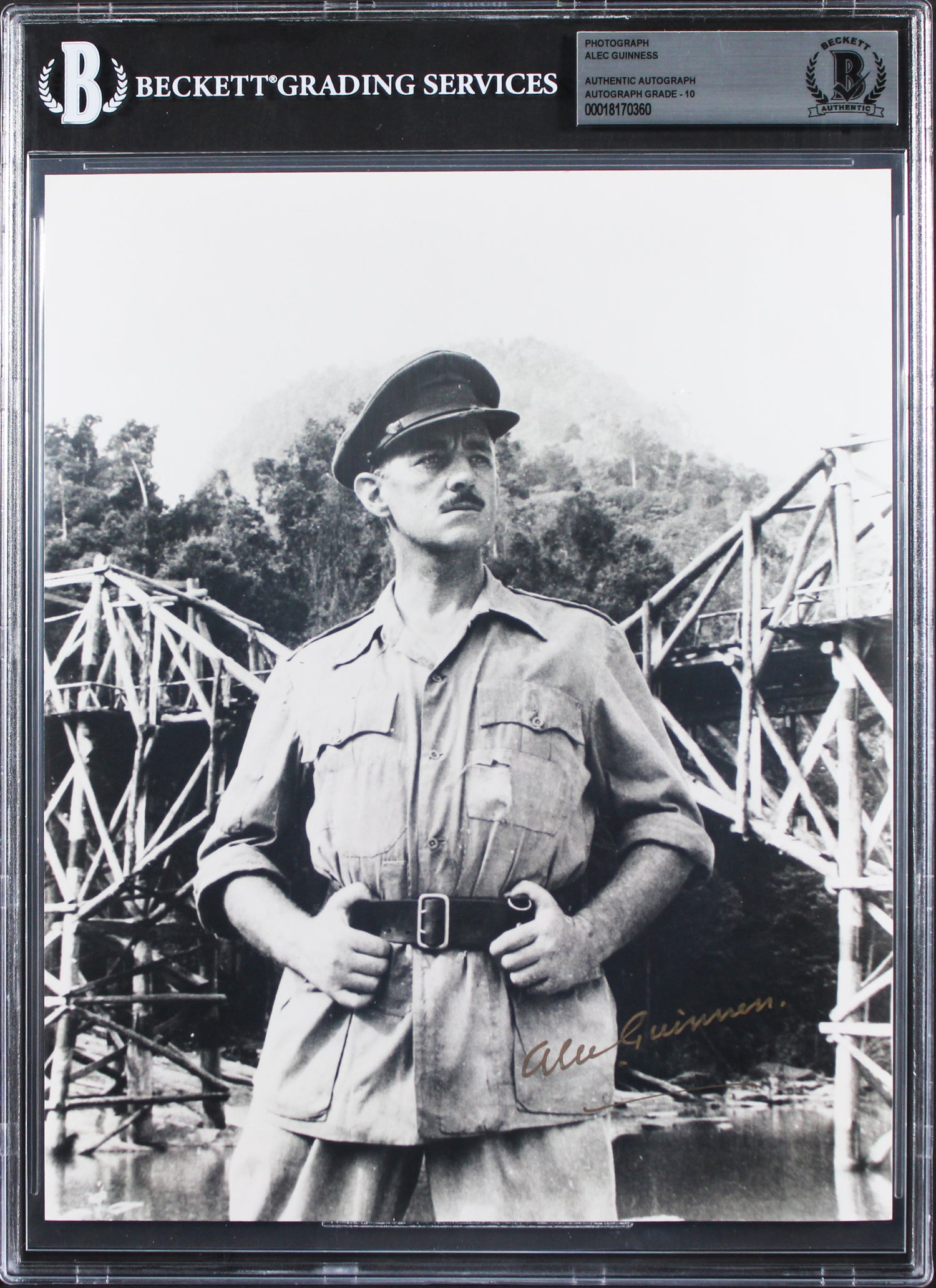 This Autographed 8x10 Photo signed by Alec Guinness, star of the iconic film The Bridge on the River Kwai, is a rare and prestigious collector’s item. Graded Gem Mint 10 and authenticated by Beckett Authentication Services (BAS), this piece combines outstanding condition with unparalleled provenance—making it a must-have for fans of classic cinema and serious memorabilia collectors. Alec Guinness's legendary performance in the 1957 Academy Award-winning film remains a milestone in cinematic history, and this authenticated signature immortalizes his legacy for generations to come.