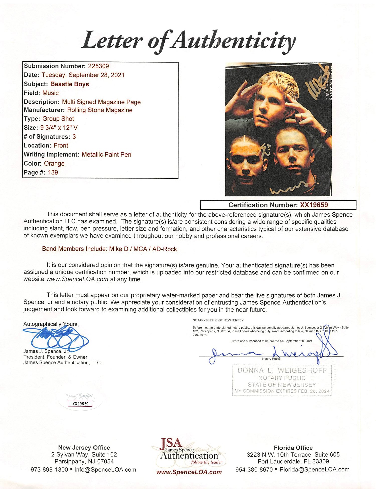 Beastie Boys Ad-Rock, MCA, and Mike D Signed 9.75x12 Magazine Page JSA #XX19659