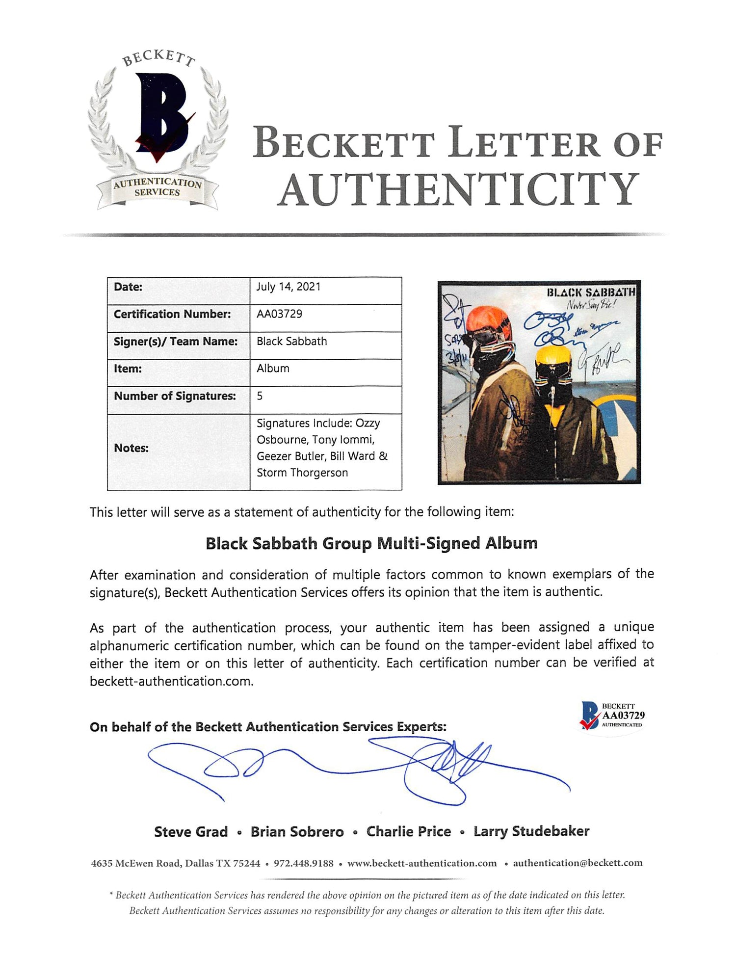 - 100% Authentic – Hand-signed by Black Sabbath legends and certified by Beckett Authentication Services (COA & hologram included).