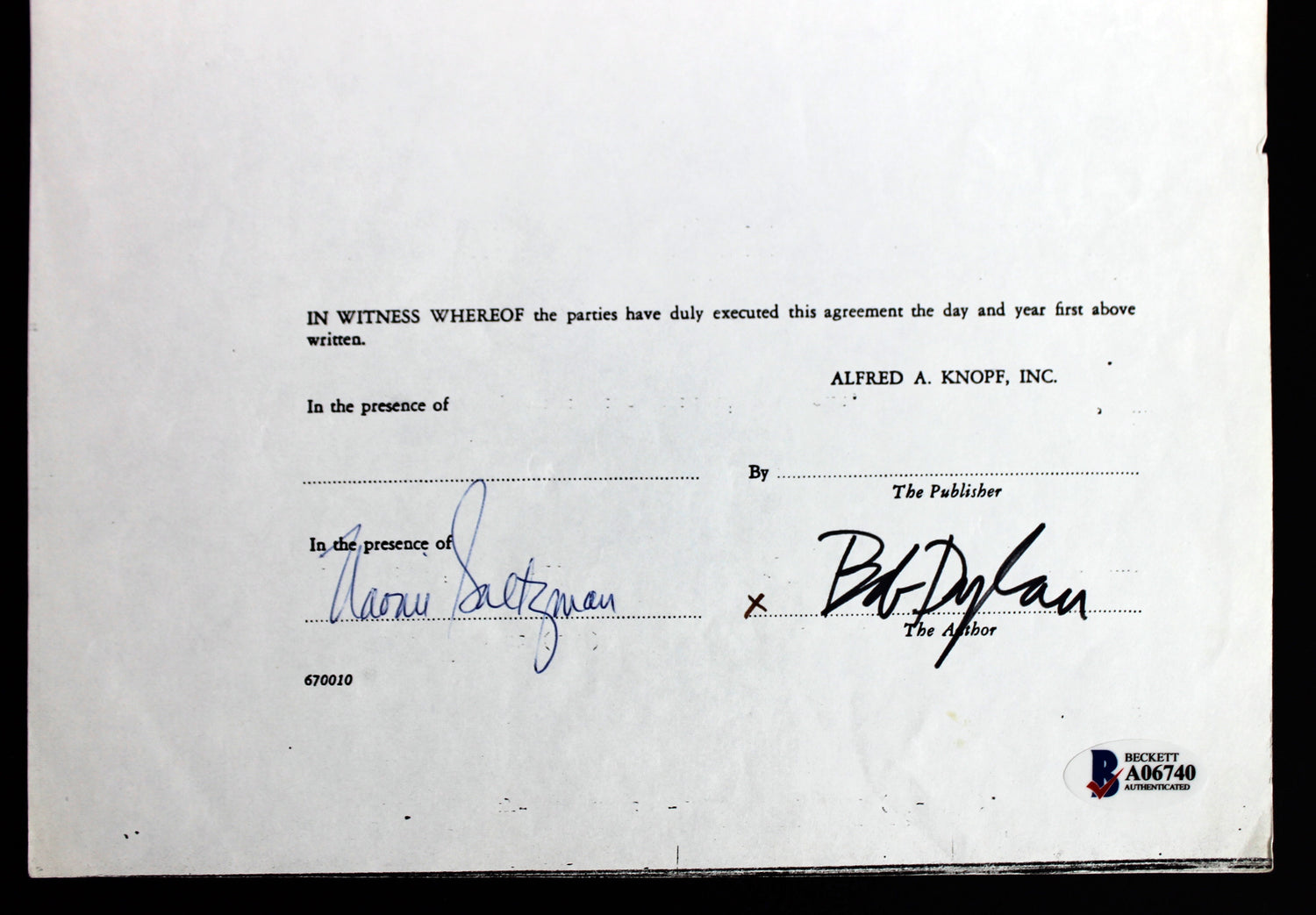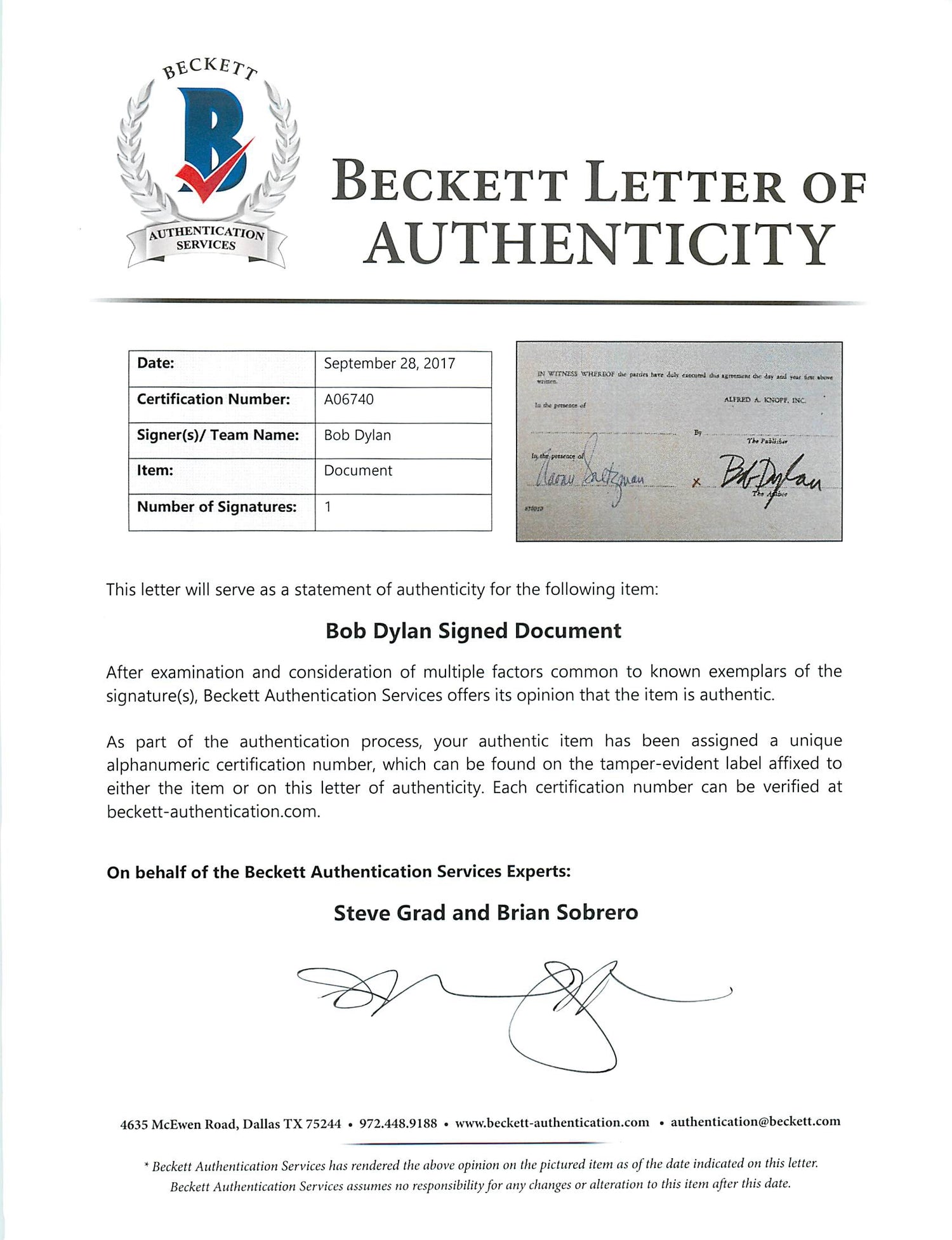 - 100% Authentic – Hand-signed by Bob Dylan and certified by Beckett Authentication Services (BAS) #A06740.