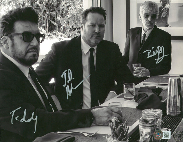 Own a piece of music history with this Autographed 8.5x11 Black & White Photo, personally signed by J.D. Andrew, Billy Bob Thornton, and Teddy Andreadis of The Boxmasters. A must-have for collectors and fans, this rare memorabilia item celebrates the legacy of the renowned rockabilly band, co-founded by Academy Award-winning actor Billy Bob Thornton.