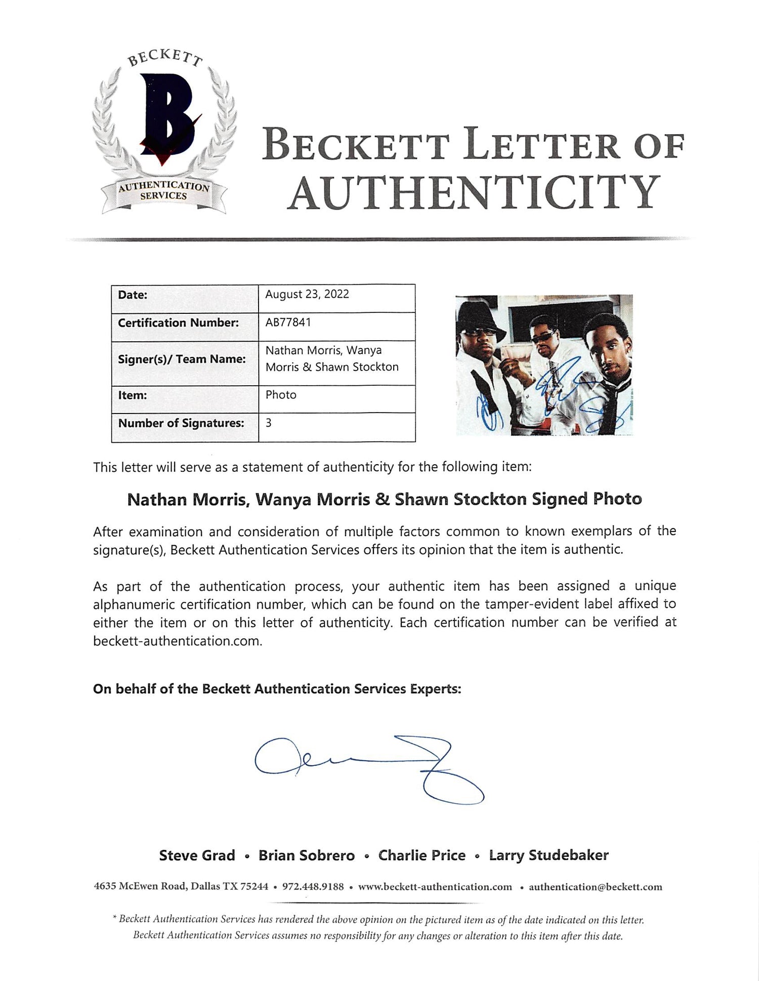 - Official Beckett Verification – Verify the authenticity of this signed photo on the Beckett Authentication Services website.