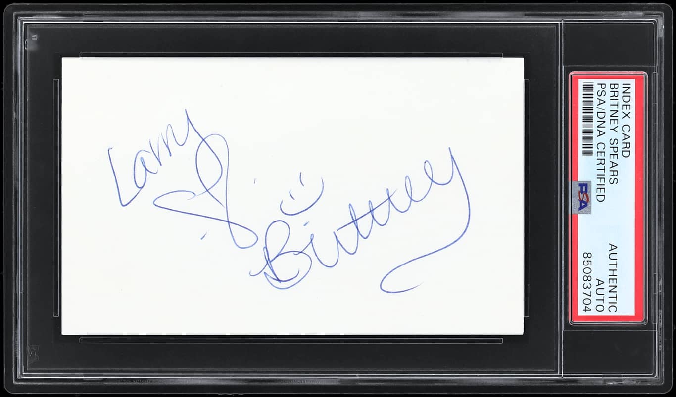 This professionally encapsulated autograph is a must-have for any pop culture memorabilia collector. Whether you're a lifelong fan or looking for a valuable investment, this Brittany Spears signed index card is a timeless treasure. Secure yours today before it's gone!