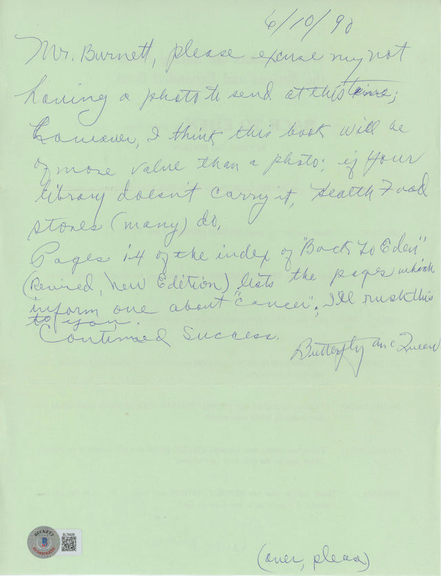 Butterfly McQueen Gone w/ the Wind Signed 8.5x11 Handwritten Letter BAS #BL76426 is backordered and will ship as soon as it is back in stock.
