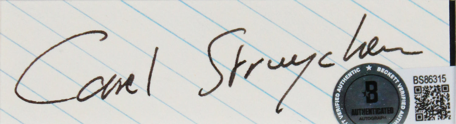Capture a piece of cult classic cinema with this Autographed 1x4 Cut Signature Framed Display personally signed by Carel Struycken, the unforgettable actor who brought the towering and enigmatic character of Lurch to life in The Addams Family film series. Known for his haunting presence and memorable catchphrase “You rang?”, Struycken’s portrayal of Lurch remains one of the most iconic roles in pop culture history. Whether you're a fan of the original comics, the 1990s films, or a dedicated memorabilia collector, this piece offers a unique way to honor the legacy of a beloved character and actor. Professionally framed to elevate its presentation, this display is not just a collector’s item—it's a conversation starter and a striking homage to the eerie elegance of the Addams Family legacy.