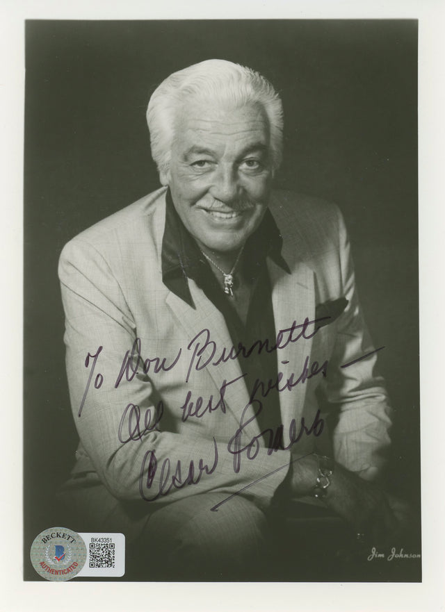 Own a piece of Batman history with this Cesar Romero Autographed 5x7 Photo, featuring a personal inscription: "To Don Burnett All Best Wishes." Best known for his iconic portrayal of The Joker in the classic 1960s Batman TV series, Romero’s signature makes this a must-have for pop culture collectors and superhero fans alike. This rare collectible is 100% authentic, verified by Beckett Authentication Services (BAS) for peace of mind.