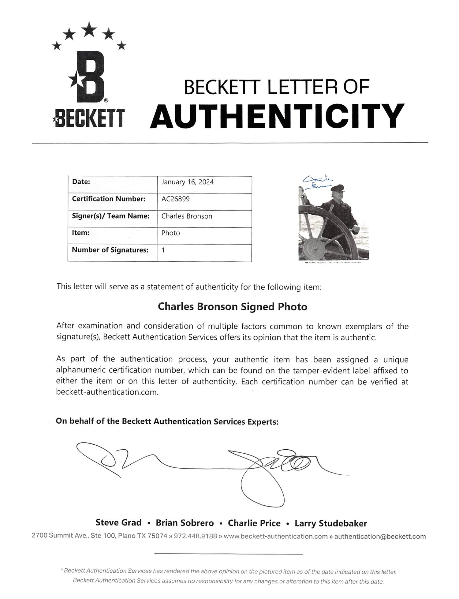 Capture the essence of cinematic greatness with this 100% authentic signed photo. Whether you're a passionate memorabilia collector or a devoted Charles Bronson fan, this rare piece makes a unique addition to any collection. Secure yours today!