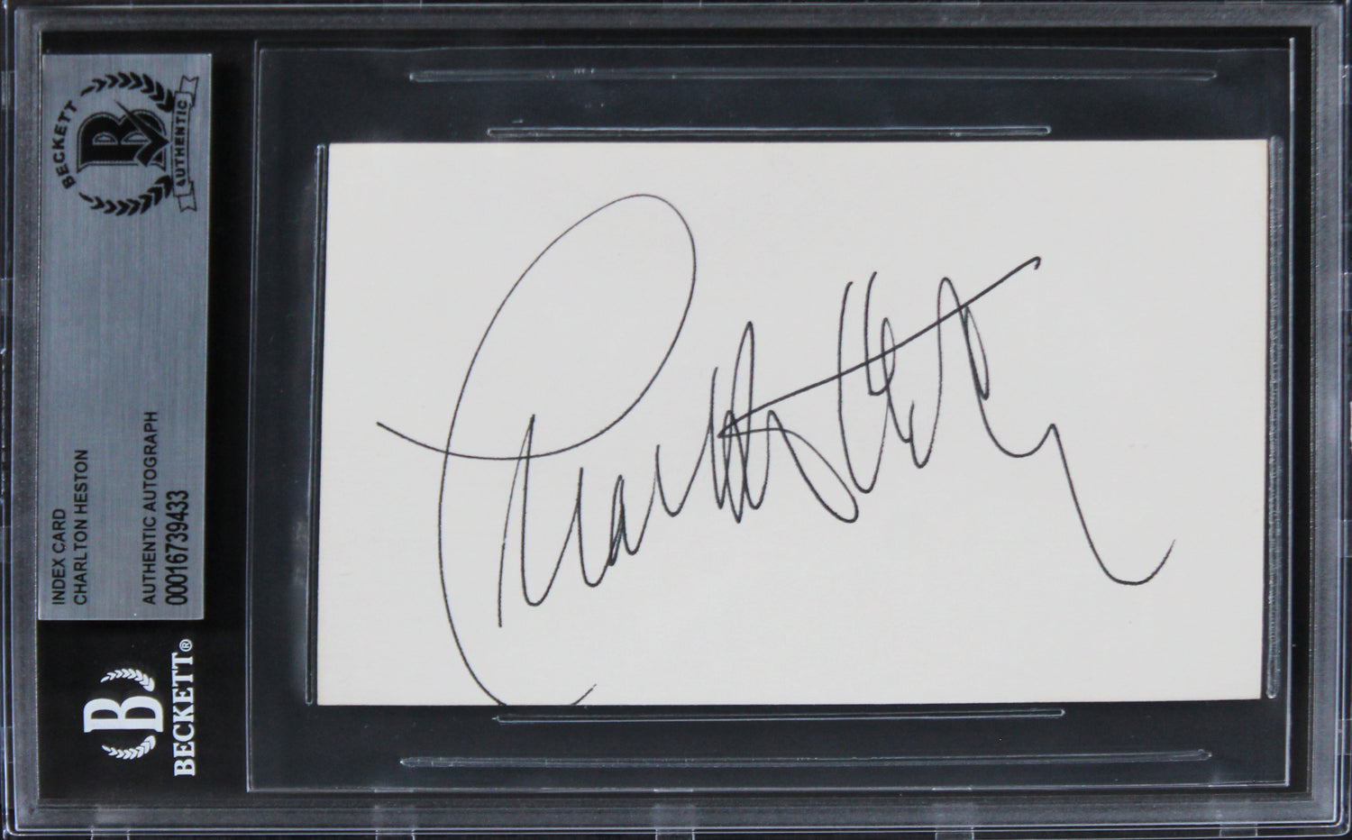 Charlton Heston Ben-Hur Authentic Signed 3x5 Index Card BAS Slabbed 2