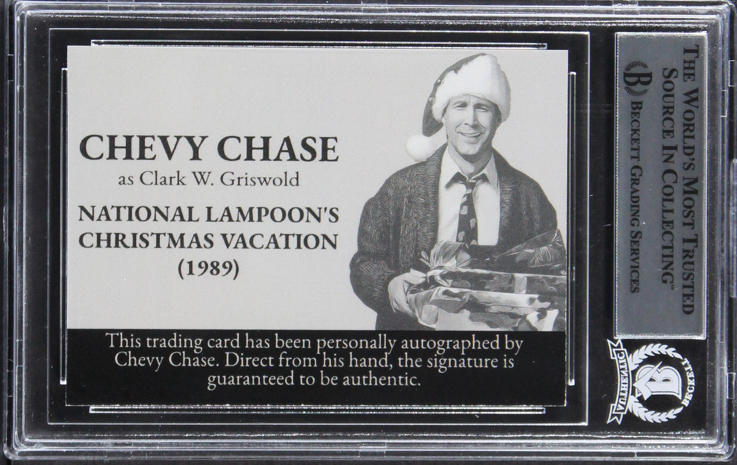 Own a piece of holiday movie history with this Chevy Chase autographed card from National Lampoon's Christmas Vacation. This highly collectible item has been personally signed by the legendary actor and comes authenticated and slabbed by Beckett Authentication Services (BAS), ensuring its 100% authenticity.