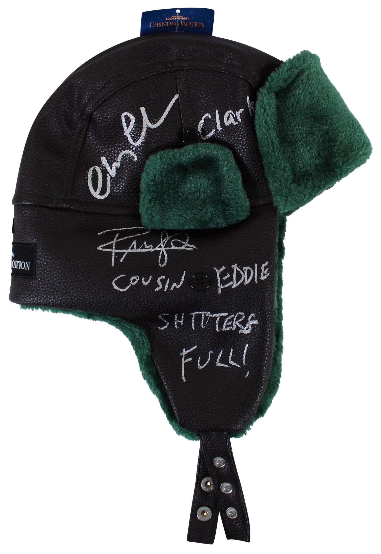 Own a piece of holiday movie history with this autographed hat, signed by Chevy Chase and Randy Quaid, the legendary stars of National Lampoon's Christmas Vacation. This exclusive collectible features their signatures along with the iconic inscription: "Cousin Eddie, S'S Full (Quaid); Clark (Chase)", making it a must-have for fans of the classic holiday comedy.