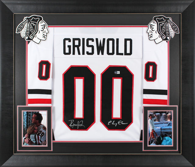 Chevy Chase & Randy Quaid Christmas Vacation Signed White Framed Jersey BAS Wit