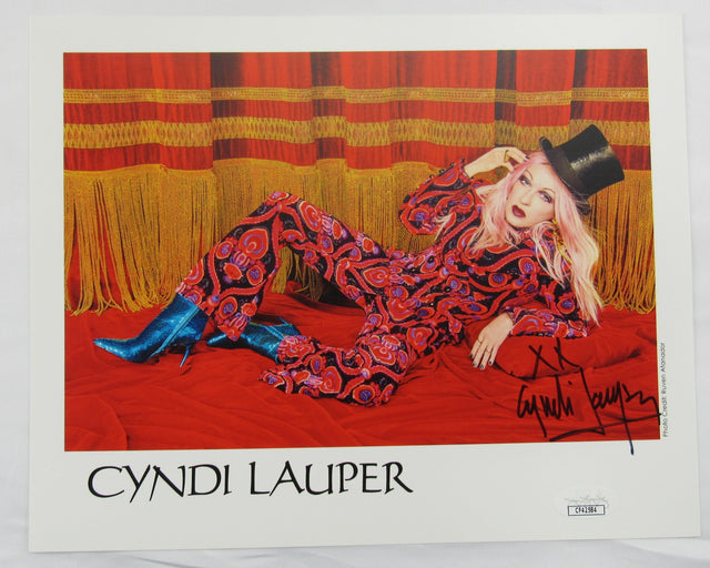 Celebrate a pop culture icon with this authentic Cyndi Lauper Signed Auto 8x10 Photo, authenticated by JSA with certification number CF42584. Known for chart-topping hits like “Girls Just Want to Have Fun” and “Time After Time,” Cyndi Lauper is a trailblazing artist whose vibrant style and powerful voice helped define 1980s music and fashion. A must-have for fans of '80s pop culture and music memorabilia, this piece makes an eye-catching addition to any collection or display.